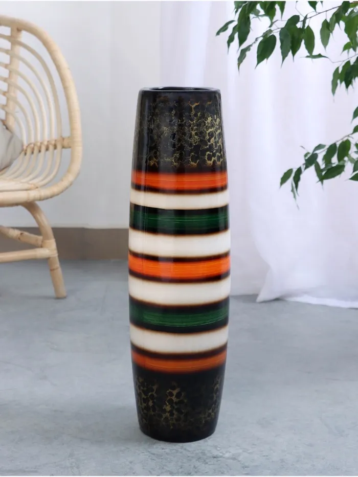 - Идеальные пропорции для напольного формата: Высота 60 см выбрана не случайно. Такая ваза уверенно занимает пространство у стены, в нише, по сторонам камина или дивана, не теряясь и не подавляя окружение. Она создаёт вертикаль и структурирует пространство.