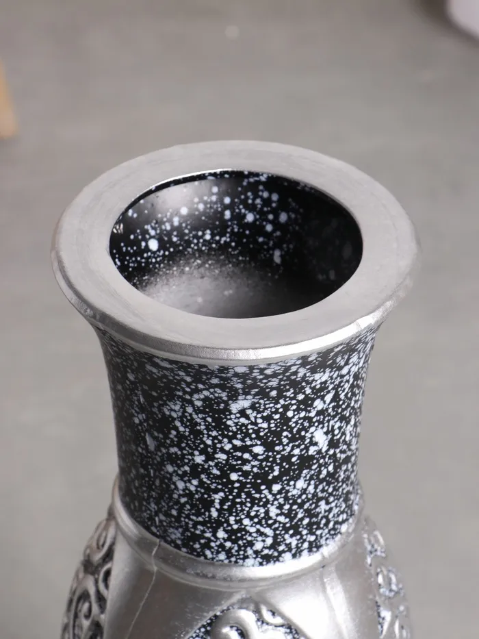 Добавьте стиль и элегантность в ваш интерьер! Напольная ваза с рельефным дизайном высотой 60 см станет изысканным акцентом в любом помещении. Серебристо-чёрный цвет придаст вашему пространству современный и утончённый вид.