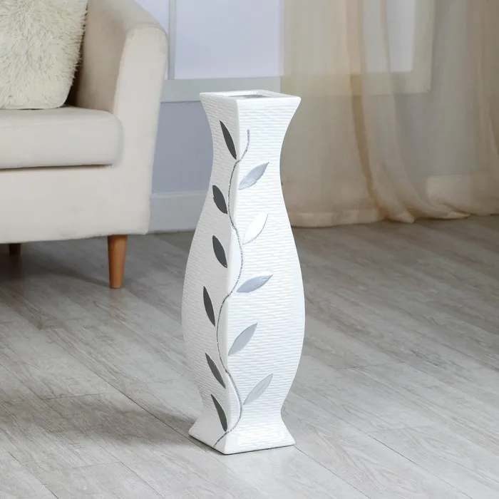 Ваза напольная «Нолвен», листья, d внутренний 9 см, 15×60 см, керамика, белая — Характеристики
