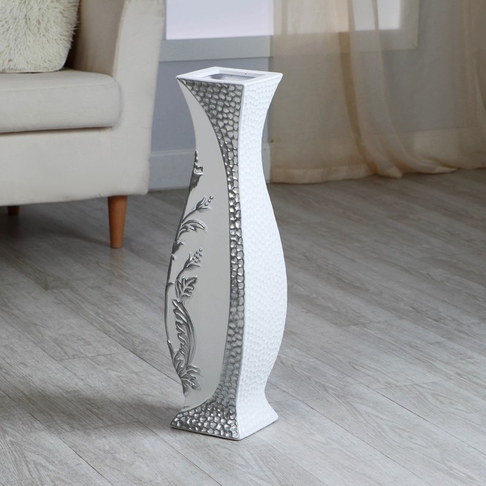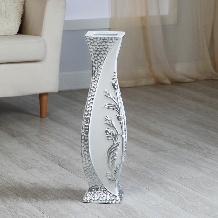 Ваза напольная «Нолвен», цветы, d внутренний 9 см, 14×59 см, керамика, белая — Характеристики