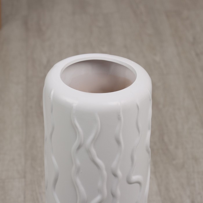 - Выразительный рельеф: Поверхность вазы не гладкая, а фактурная. Это превращает её из простого сосуда в тактильный объект, интересный для рассмотрения вблизи. Рельеф оживляет монохромный цвет, делая белый не плоским, а глубоким.