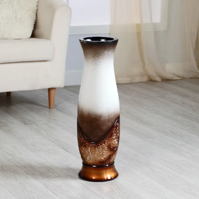Ваза напольная «Патаянс», 16×59 см, d внутренний 13 см, керамика, бело-коричневая — Характеристики