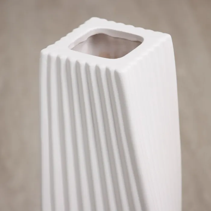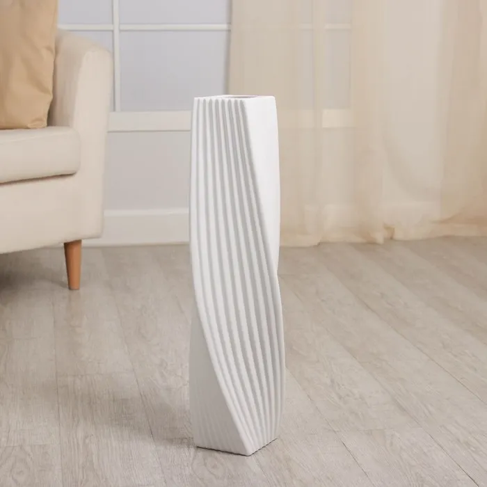 Напольная керамическая ваза с рельефным дизайном станет элегантным акцентом в вашем интерьере. Белая расцветка и высота в 58 см делают её универсальным выбором для различных помещений, начиная от строгих офисов и заканчивая уютными гостиными.