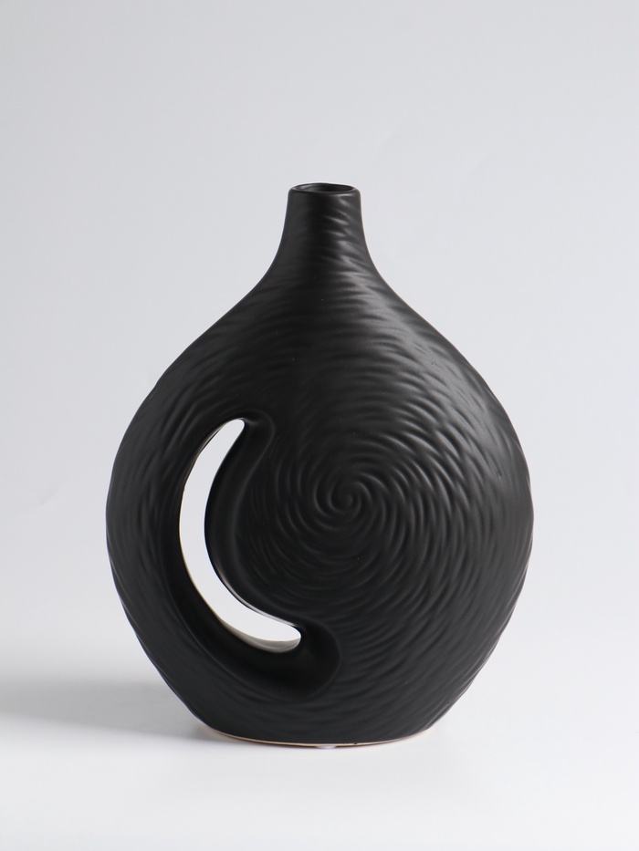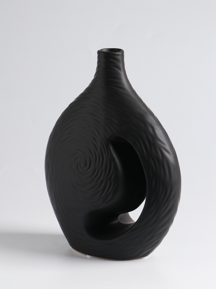 Чёрная керамика — это всегда вне времени. Ваза «Невада» — это выразительный акцент для современного интерьера. Её лаконичная форма и глубокий матовый цвет создают идеальный фон для живых или сухих композиций, добавляя пространству строгости и стиля.