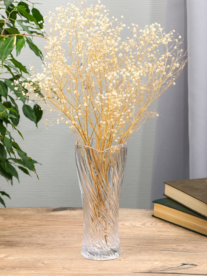 Настольная ваза из прозрачного стекла — это изысканное украшение любого интерьера. С высотой в 23,5 см она привносит элегантность и легкость в пространство, отражая свет и создавая атмосферу уюта и гармонии. Такая ваза легко адаптируется в разных стилевых решениях, вписываясь в классические или современные интерьеры. Прозрачность материала позволяет экспериментировать с различными декоративными элементами, ведь она будто озаряет пространство изнутри.
