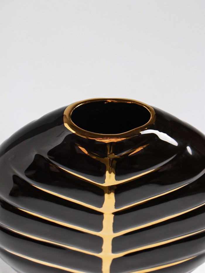 Чёрная керамика — вечная классика. Ваза «Новайо» — это настольная ваза для тех, кто ценит сдержанность и лаконичную эстетику. Её глубокий чёрный цвет и фактурная поверхность создают идеальный фон для свежих цветов или сухоцветов, превращая простой букет в законченную композицию.