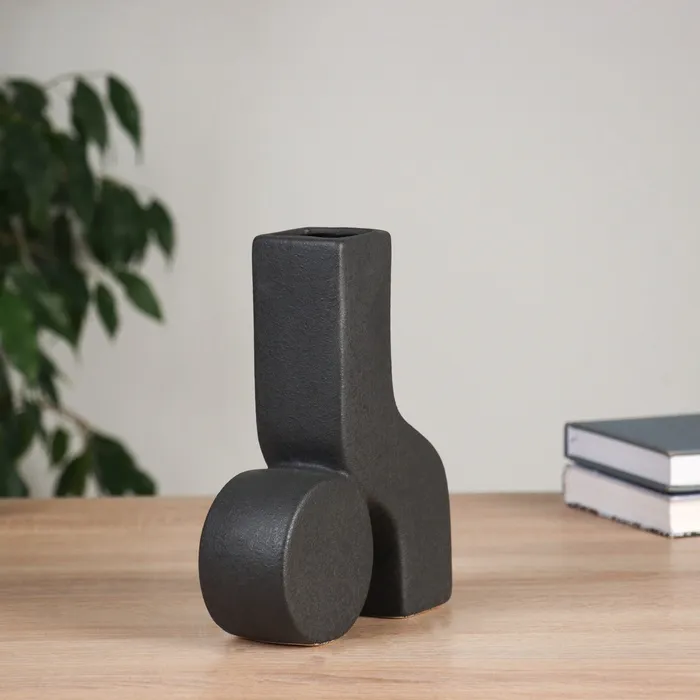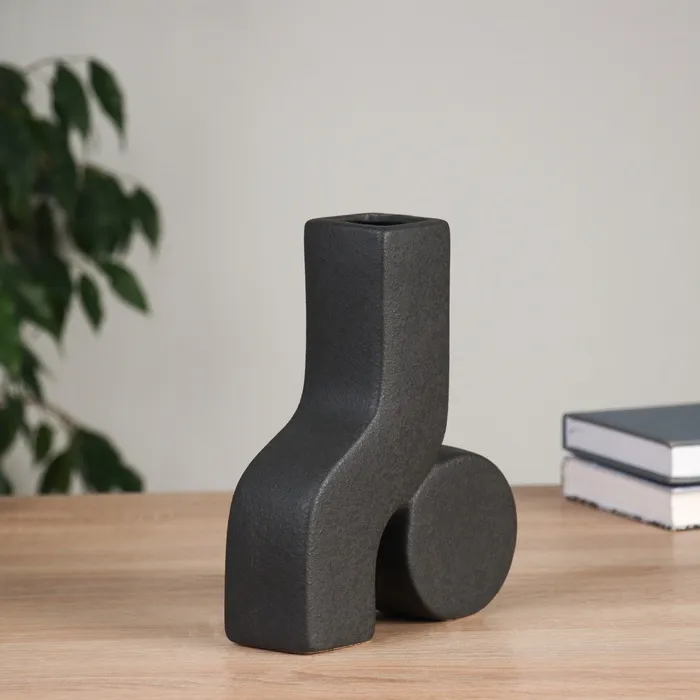 Элегантная керамическая ваза для вашего интерьера. Изысканная черная поверхность с рельефными элементами. Настольная ваза высотой 19,5 см станет акцентом в любом пространстве, добавляя ноту утонченности и стиля. Идеально подходит для цветов и декоративных веток.