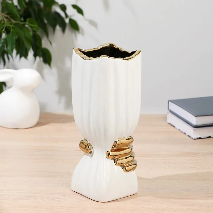 Привнесите в ваш дом нотки элегантности и утончённости с помощью этой великолепной настольной вазы "Остин"! Бело-золотистое оформление идеально подойдет как для свежих цветов, так и для сухих композиций, создавая гармонию и изысканный стиль в вашем интерьере.