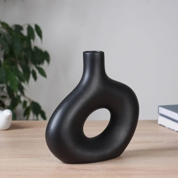 Воздушная элегантность для вашего интерьера! Овальная керамическая ваза (черная) – это стильное дополнение к вашему дому, которое подчеркнет уникальность и уют пространства.
