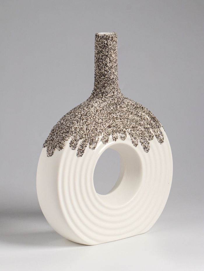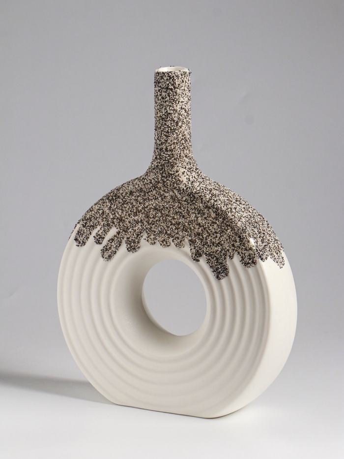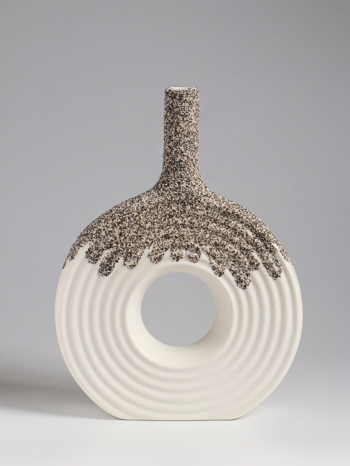 • Выразительная текстура керамики: Поверхность вазы сохраняет естественную фактуру материала. Это придаёт ей тактильную привлекательность и живую, несовершенную красоту ручной работы, даже будучи изделием промышленного производства.
