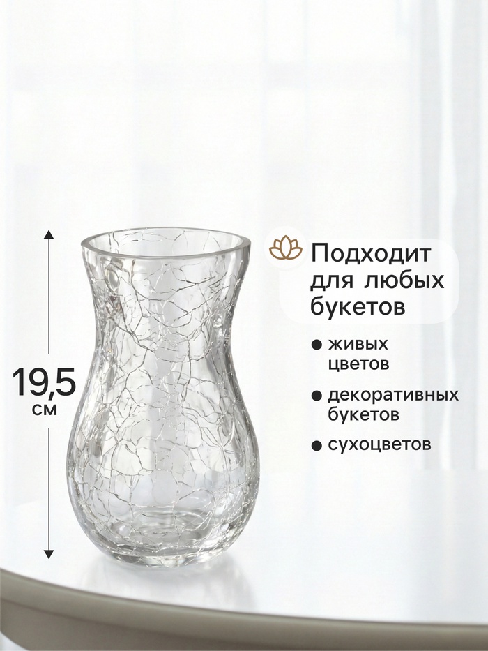 • Стабильность и форма: При кажущейся хрупкости, ваза обладает устойчивым дном и продуманными пропорциями (19,5 см в высоту). Она надёжно держит небольшой или средний букет, не переворачиваясь.