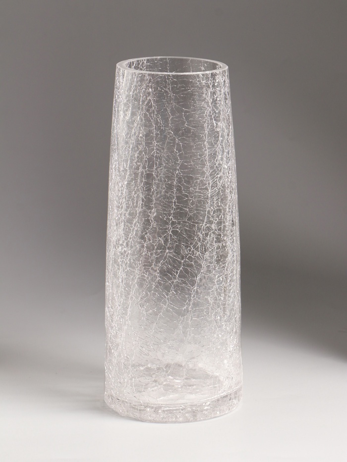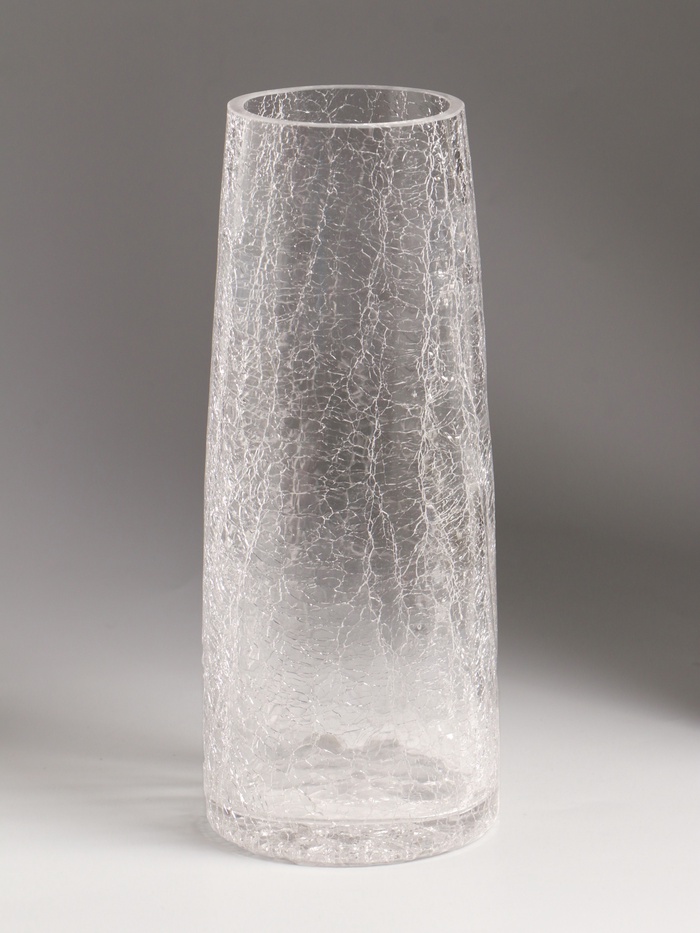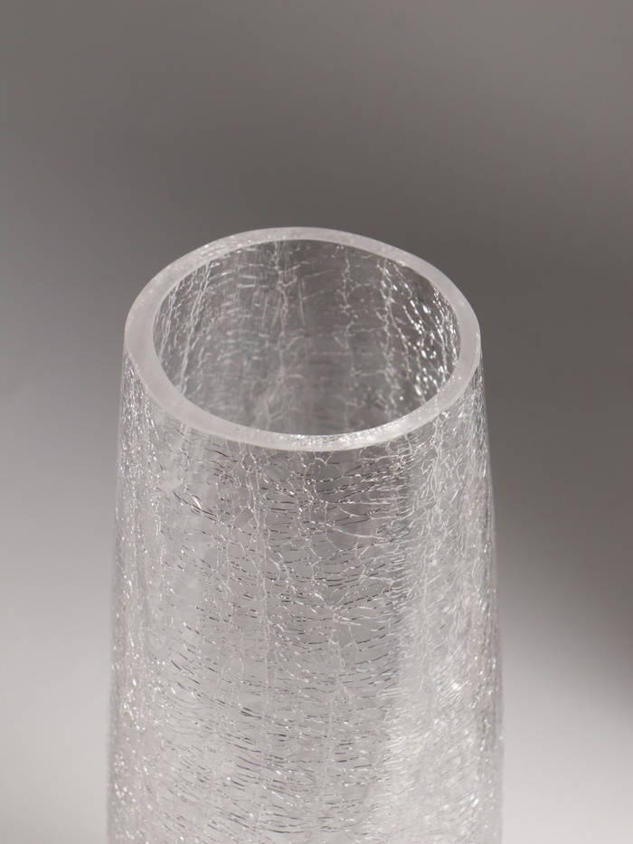• Ажурный узор «Паутинка»: Поверхность вазы украшена тонким рельефным рисунком, напоминающим морозные узоры или кружево. Он играет со светом, создавая интересные оптические эффекты и делая простую прозрачную вазу настоящим арт-объектом.