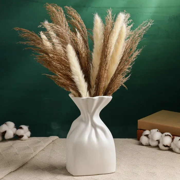Откройте для себя уникальную керамическую вазу, которая станет изысканным акцентом в вашем интерьере. Эта настольная модель высотой 23 см с оригинальной формой в виде мешка отлично впишется в любой стиль, добавляя нотки современности и элегантности. Белый цвет вазы легко сочетать с различными декорами и цветами, что делает её универсальным решением для вашего дома.