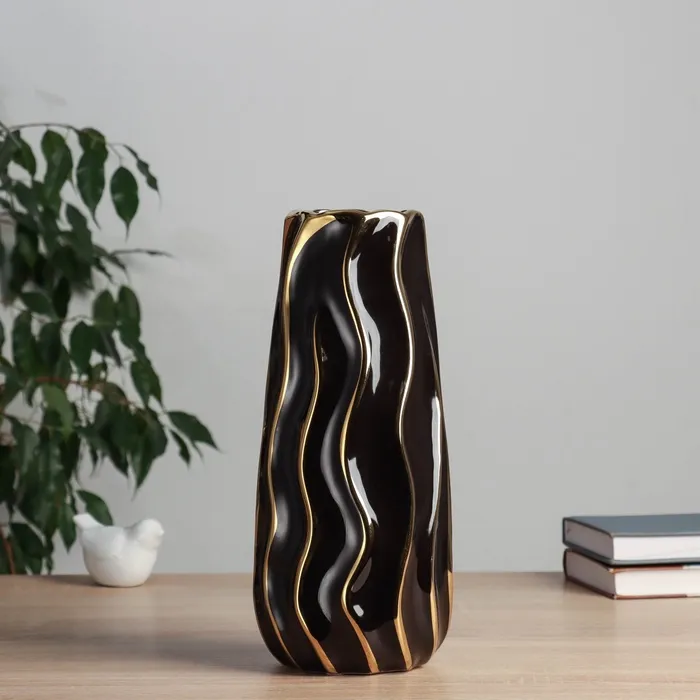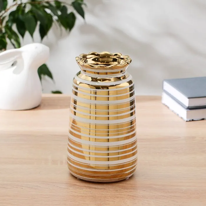 Ваза «Голден тайм», 33×7.5×3 см, керамика, золото