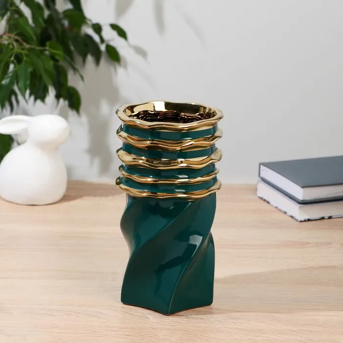Ваза «Бирлант», d=11.5 см, h=21.5 см, керамика, зелёно-золотая