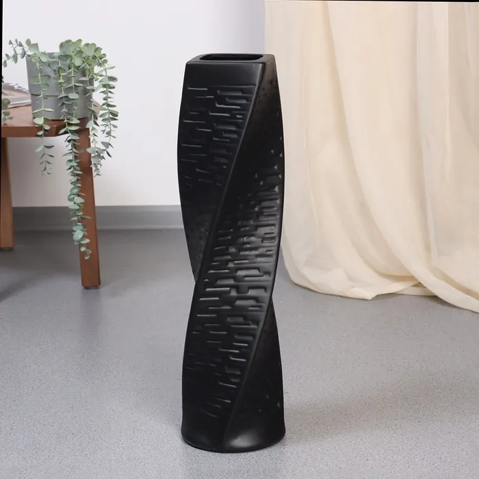 Ваза напольная «Хамфри», 58×12 см, керамика, чёрная