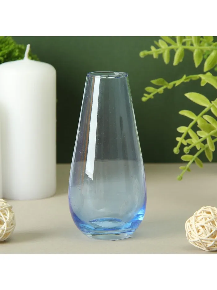 Каждая ваза выдувается мастером. Второй точно такой же не встретить. А случайный пузырёк воздуха или застывшая стеклянная капелька на горлышке лишь подчёркивают её уникальность.