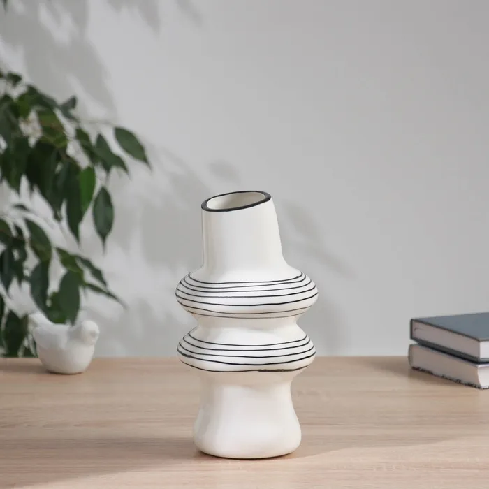 Функциональное искусство для вашего интерьера! Настольная ваза с художественной росписью – это не просто сосуд, это настоящее произведение искусства из керамики, которое вдохновляет и притягивает взгляды. Ее минималистичный черно-белый дизайн и ручная роспись делают каждую вазу уникальным элементом вашего дома.