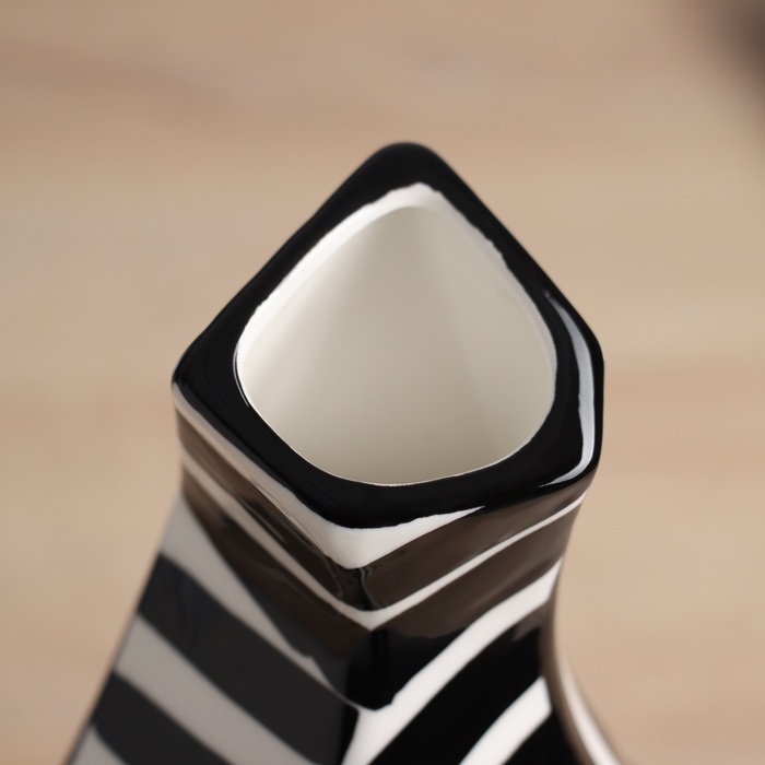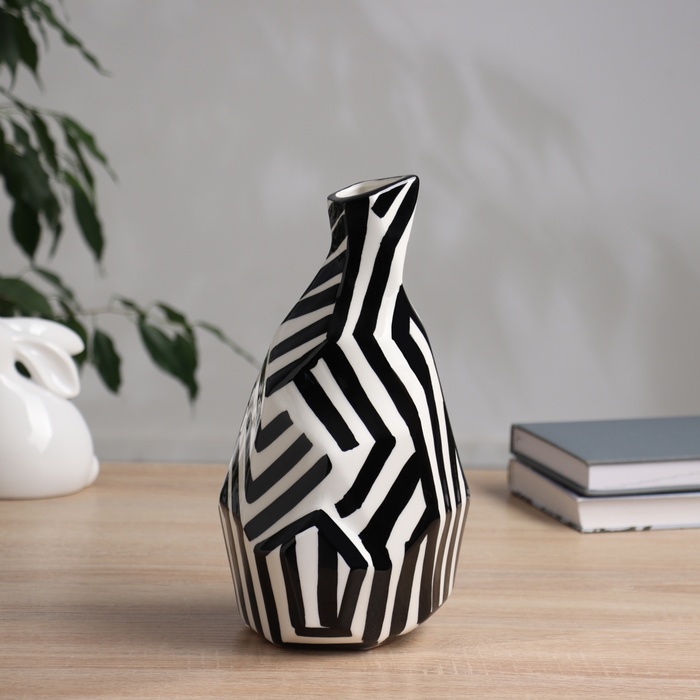 - Выразительный чёрно-белый контраст: Классическое сочетание цветов делает вазу универсальной для любого стиля. Она одинаково гармонично смотрится в минималистичном лофте и в классической гостиной.