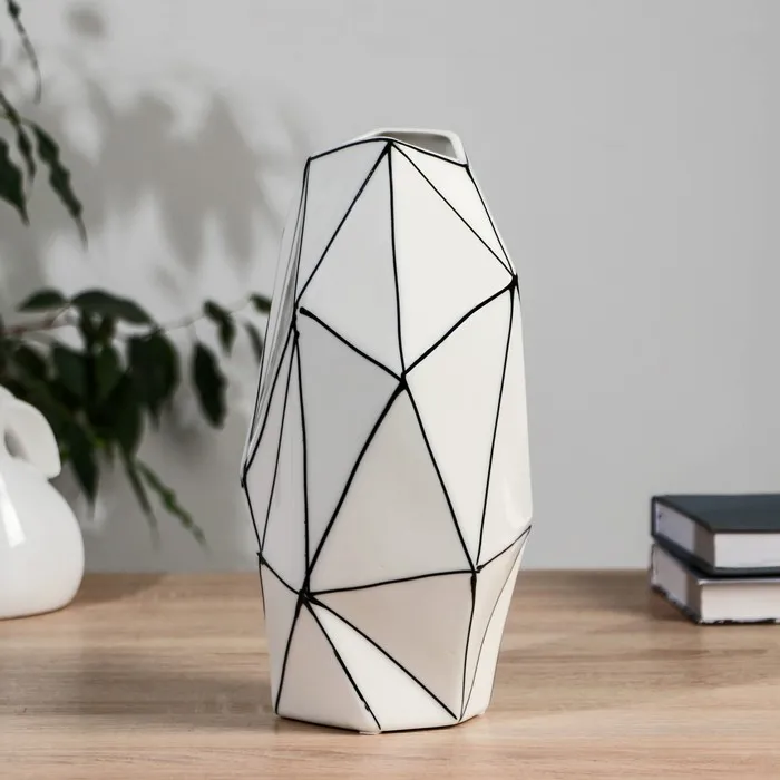 - Элегантность формы и цвета: белый и черный акценты создают классическую комбинацию, которая добавляет современности и утонченности в пространство. Высота 25 см делает её идеальной для настольных композиций.