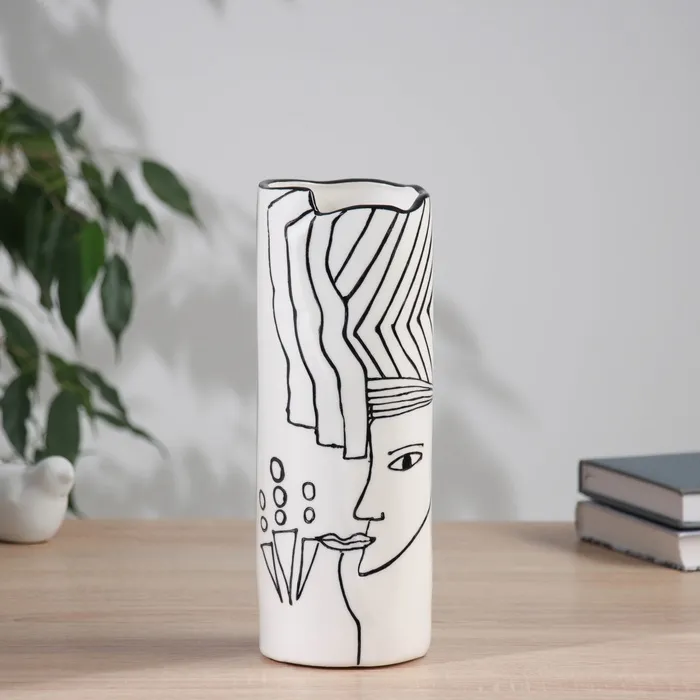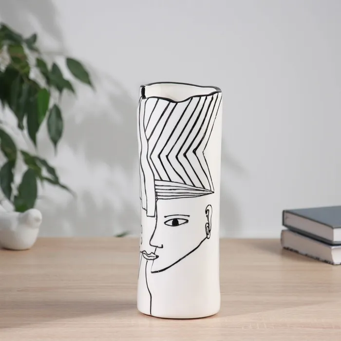 Ваза «Пикассо», волосы геометрия, 25×9 см, ручная роспись, керамика, чёрно-белая — Характеристики