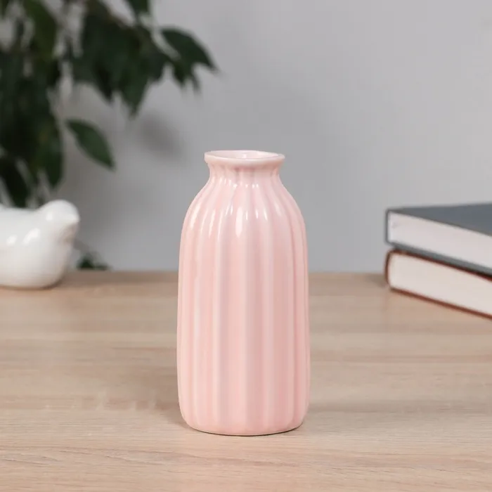 Ваза «Олвен», классик, 12.5×5 см, керамика, светло-розовая