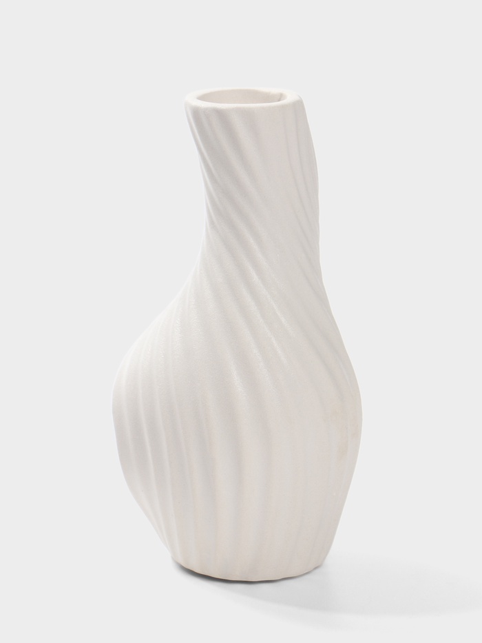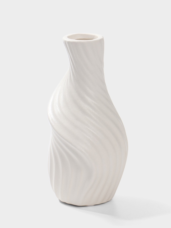 Создайте настроение: Эта ваза — основа для минималистичных и современных аранжировок. Её белый цвет и сложная текстура сочетаются с любыми оттенками в интерьере, от скандинавского стиля до лофта. Предмет, который говорит о внимании к деталям и ценит тихую, неброскую эстетику.