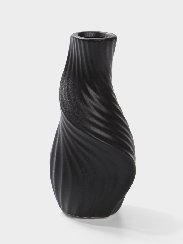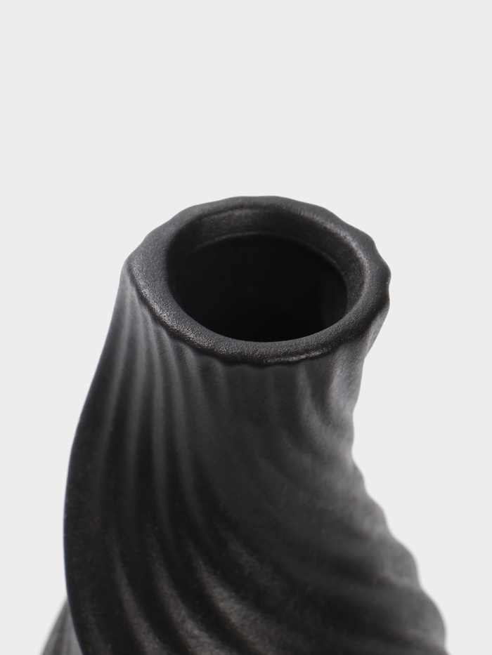 Черная керамика, рождающая форму. Настольная ваза с рельефом — это скульптурный акцент для интерьера. Её глубина и фактура создают игру света, превращая простой букет или одиночную ветку в законченную композицию.