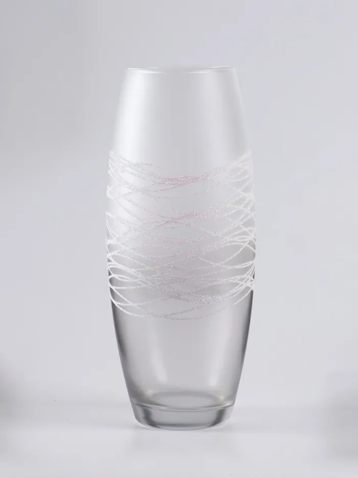 Эта настольная ваза станет идеальным дополнением для цветов с тонкими стеблями. Её вытянутый силуэт и лёгкая дымчатая текстура создают ощущение воздушности, подчёркивая естественную красоту живых или сухоцветов. Прозрачное стекло мягко преломляет свет, добавляя композиции объём и глубину.