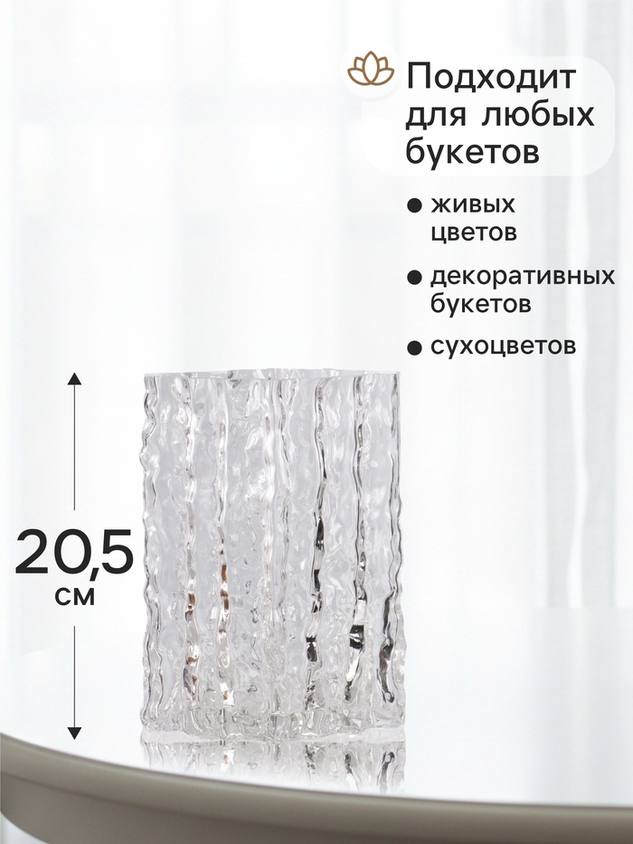 - Кристальная прозрачность: Стекло не искажает цвета и не отвлекает от содержимого. Вы видите чистые линии стеблей и наслаждаетесь игрой света на гранях.