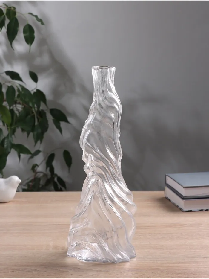Поставьте в неё несколько стеблей, чтобы подчеркнуть изящный силуэт, или создайте пышный букет — она гармонично дополнит оба варианта. Ваза сохранит лаконичную выразительность даже без наполнения, работая как самостоятельный арт-объект. Она привнесёт в пространство ощущение движения и света.