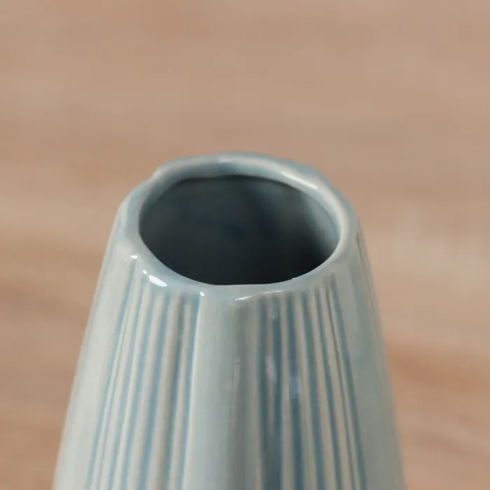 Представляем вам стильную настольную вазу, которая станет изысканным акцентом в вашем интерьере. С её нежным голубым цветом и рельефным оформлением, она привнесёт свежесть и уют в любое пространство, будь то дом или офис.