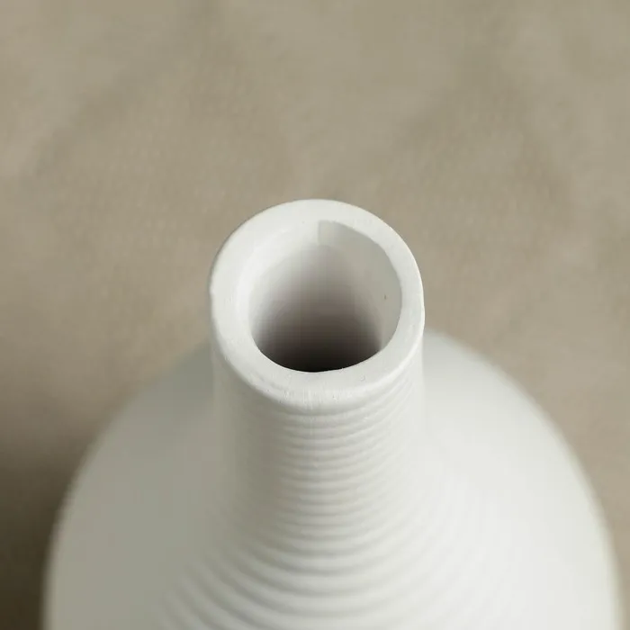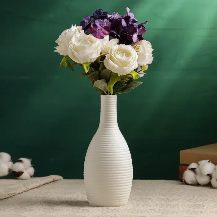 - Эстетика и стиль: Простая форма и белый цвет позволяют вазе легко вписываться в различные интерьеры, добавляя им свежести и изысканности.