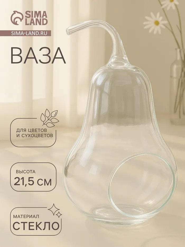 Стеклянная ваза в форме груши объёмом 1 литр станет не только функциональным, но и стильным аксессуаром для вашего дома. Её оригинальный дизайн привнесёт нотку изысканности в любой интерьер.