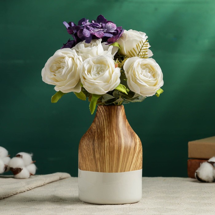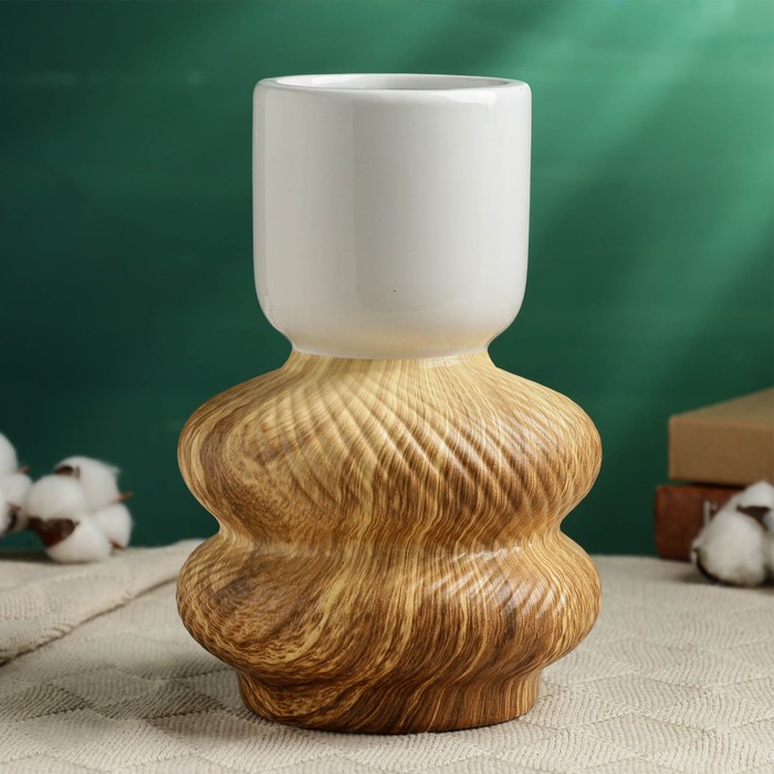 Украсьте интерьер стильным акцентом!Керамическая настольная ваза 15×10 см в двух тонах – это изысканное дополнение для вашего дома или офиса. Элегантная комбинация белого и коричневого оттенков привнесет в пространство уникальную атмосферу.