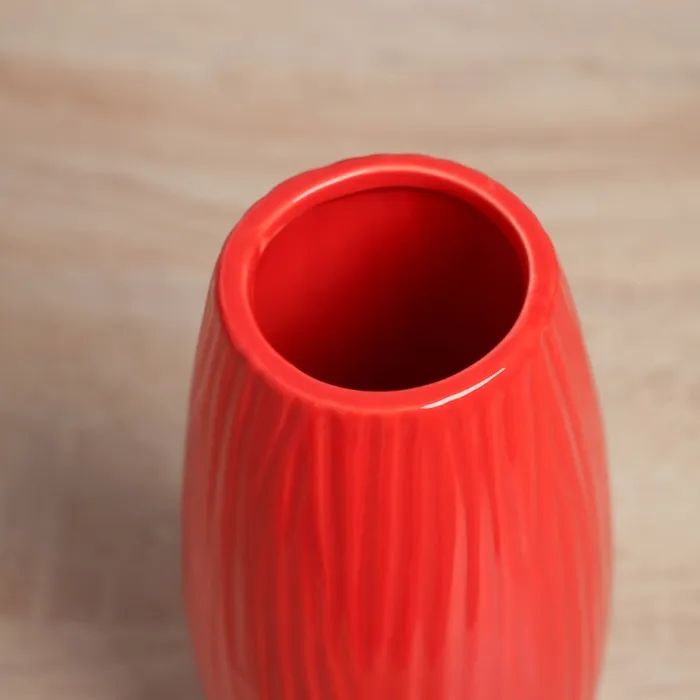 Настольная ваза из керамики с рельефными полосками. Яркое акцентное решение для вашего интерьера. Красный цвет добавляет теплоту и комфорт в любое пространство, а компактные размеры позволяют разместить вазу даже в ограниченном пространстве. Высота 17 см — идеальна для небольших букетов или в качестве самостоятельного украшения.