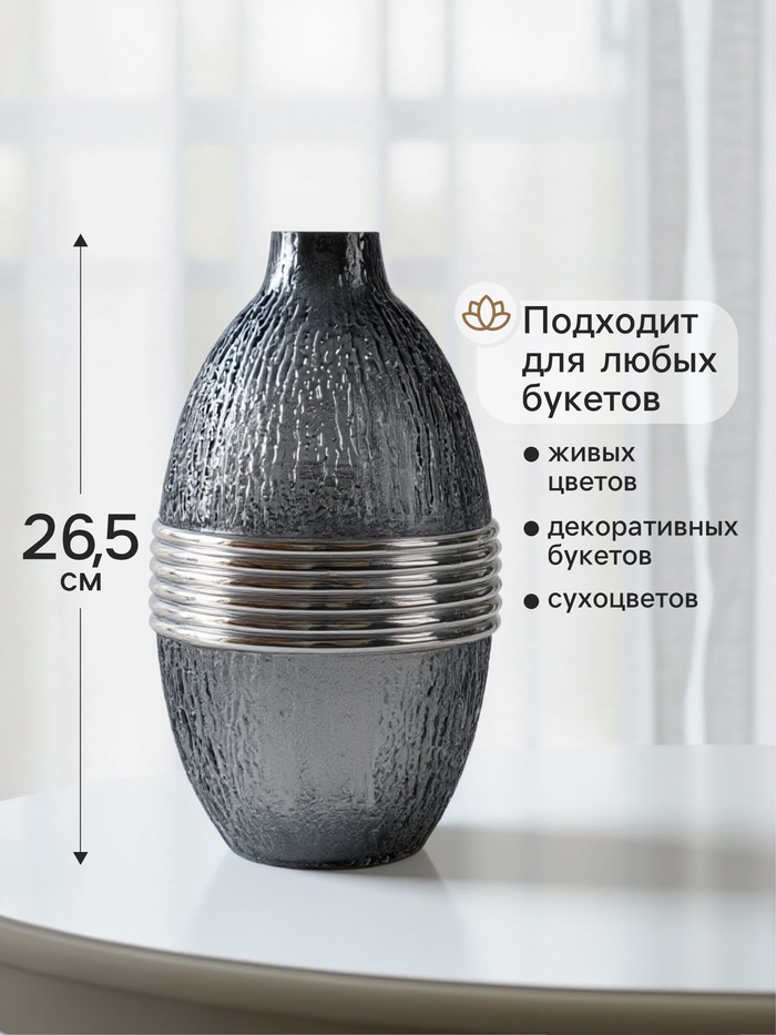 Ваза «Томмазо», 26.5×16 см, стекло, чёрная — Характеристики