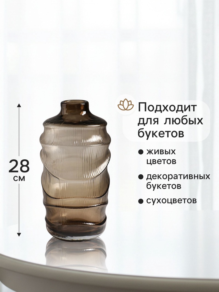Ваза «Тонье», 28×14 см, стекло, серо-коричневая — Характеристики