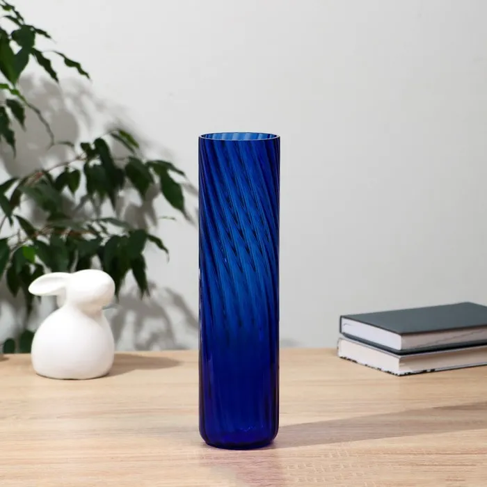Ваза «Цилиндр», d=8 см, h=30 см, рифлёная, стекло, синяя — Характеристики