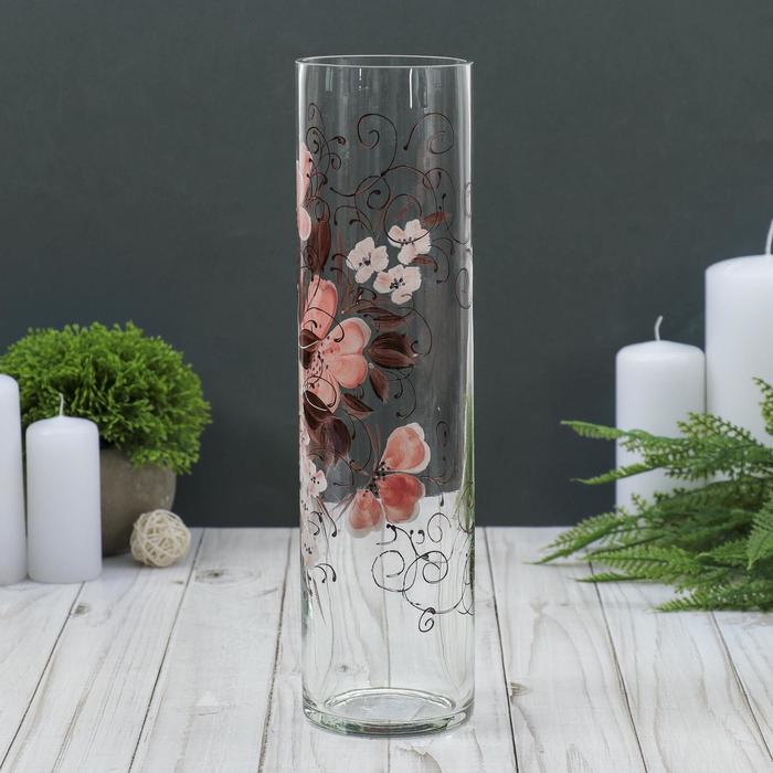 Ваза «Цилиндр», гибискус, ручная роспись, 30×8 см, стекло преобразит пространство и как самостоятельный элемент декора. Наполните интерьер уютом!