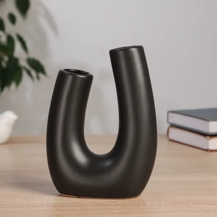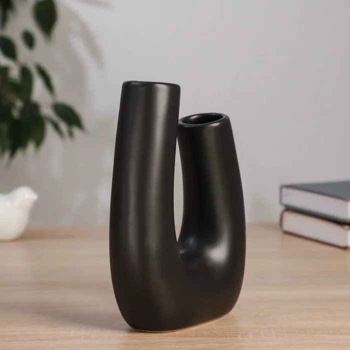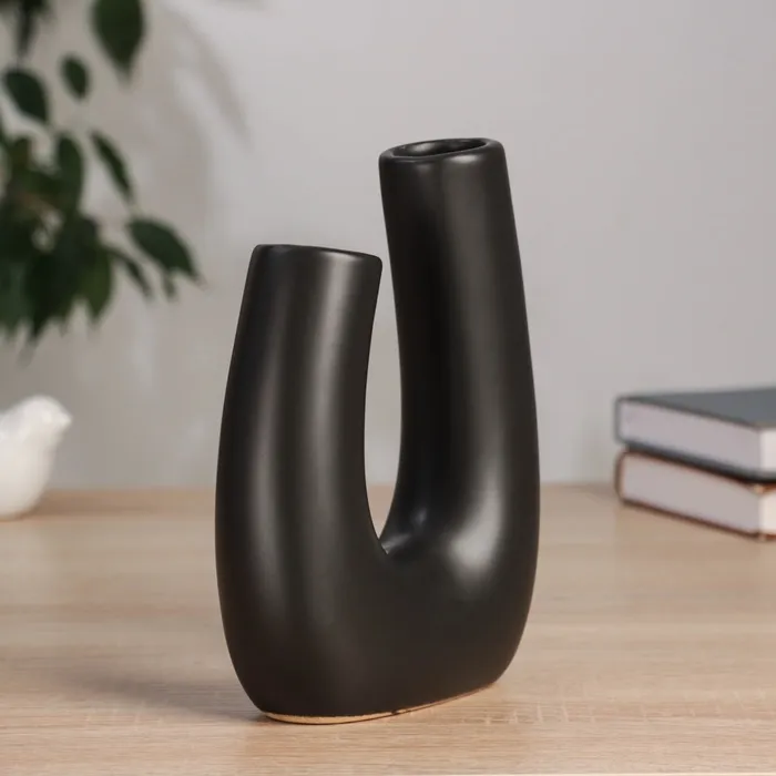 - Изысканный дизайн: Оформление ваза с абстрактными элементами придаёт ей уникальность, а черный цвет добавляет глубины и стиля.