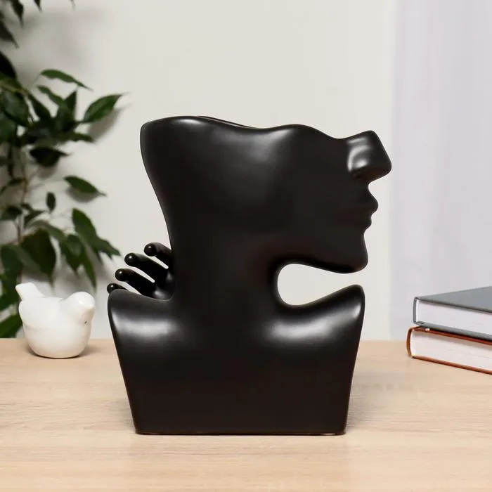 Ваза «Утончённый профиль«, 17×8×21 см, керамика, чёрная