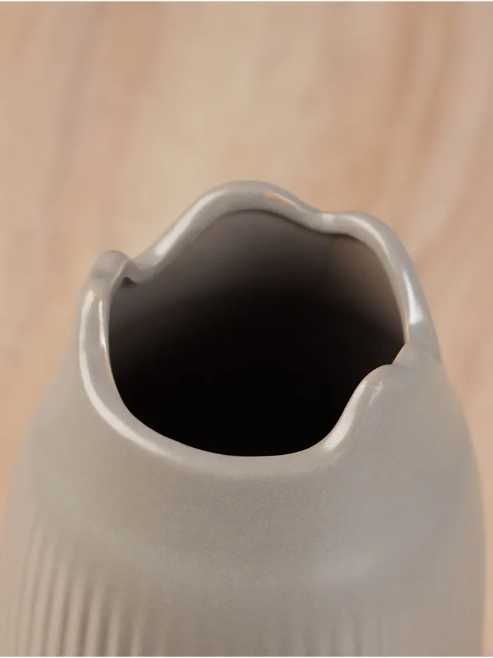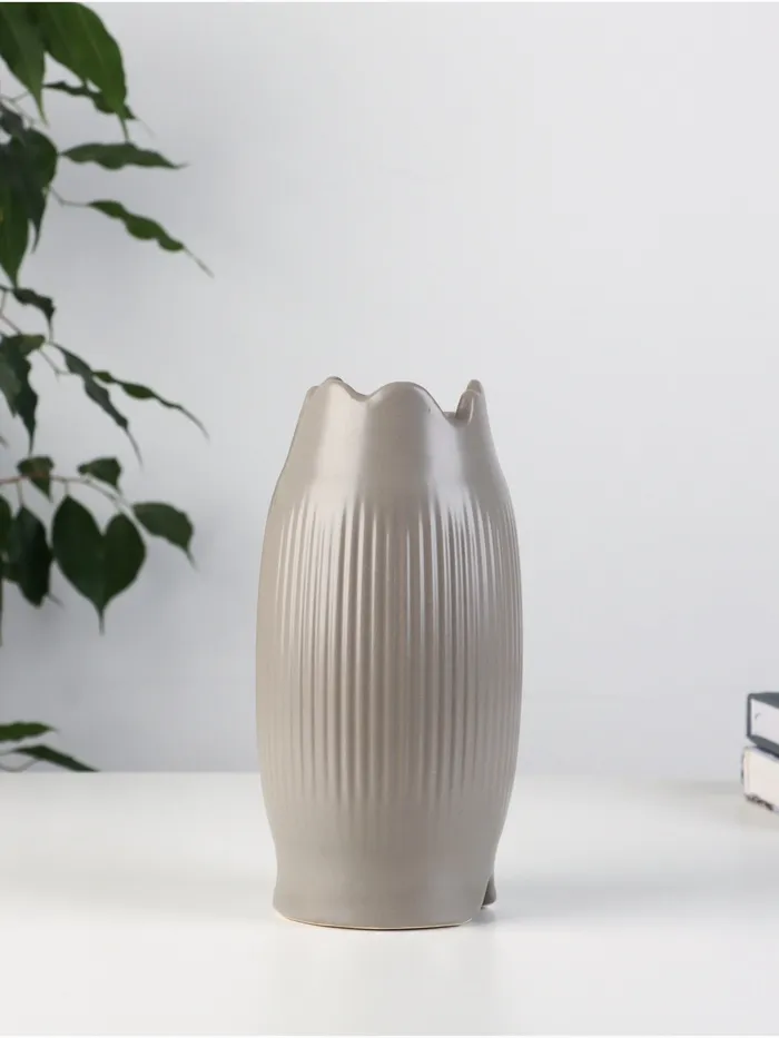 Ваза «Вайолэт» — это элегантное дополнение к вашему интерьеру, сочетающее в себе современный дизайн и классическую эстетику. Её серая керамика и рельефное оформление придают изделию уникальный характер, делая его центральным элементом любого пространства. Ваза идеально впишется в гостиную или офис, подчеркивая ваш вкус и стиль.