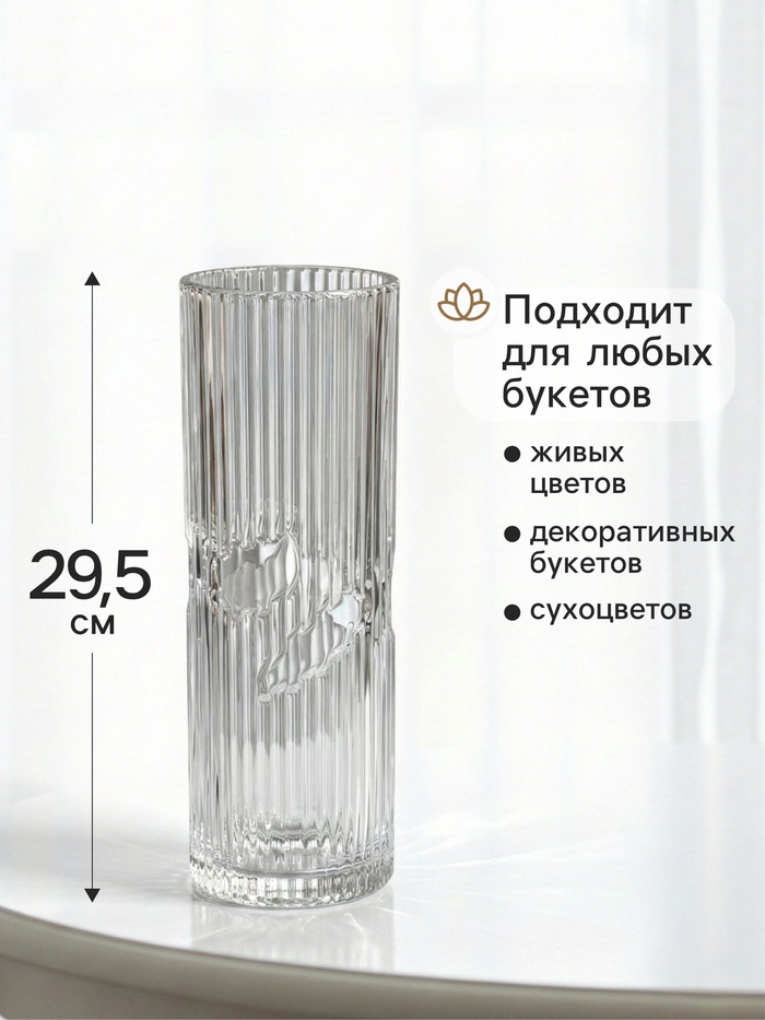 • Универсальный размер: Высота 29,5 см оптимальна для большинства срезанных цветов — от роскошных роз и лилий до полевых ромашек и веточек эвкалипта. Ваза устойчиво стоит на столе, комоде или полке.