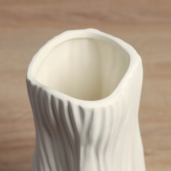 Элегантная настольная ваза станет идеальным решением для оформления вашего интерьера и добавления в него утонченности. Изготовленная в белом цвете, эта модель с рельефным дизайном добавляет особый шарм любому пространству, превращая его в стильный и комфортный уголок.