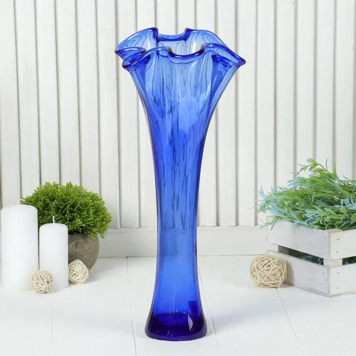 Ваза "Волна" h 400 мм. из синего стекла (без декора) преобразит пространство и как самостоятельный элемент декора. Наполните интерьер уютом!