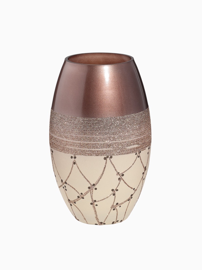 - Выразительный дизайн: Глубокий коричневый оттенок стекла создает эффект благородной плотности и насыщенности цвета. Тонкие золотые полосы добавляют композиции лёгкий акцент роскоши, не перегружая общее восприятие. Ваза выглядит современно и уместна в разных стилях интерьера.