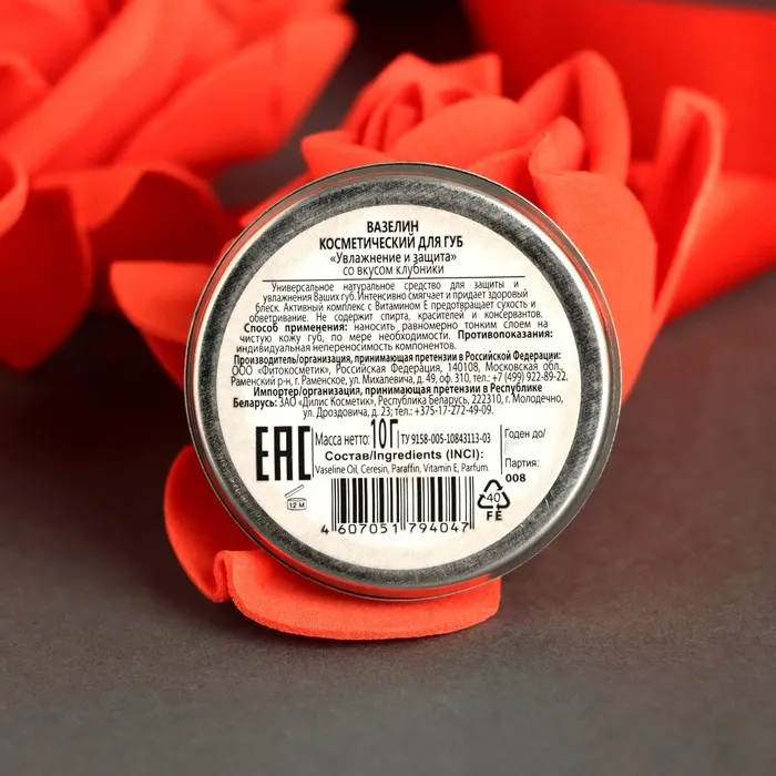 Вазелин косметический для губ "Увлажнение и защита" со вкусом клубники, 10 г — Характеристики