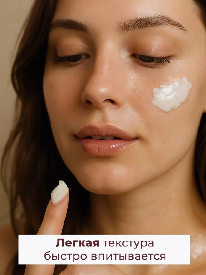 - Имеет легкую текстуру, которая легко наносится и быстро впитывается, не оставляя жирного блеска.
