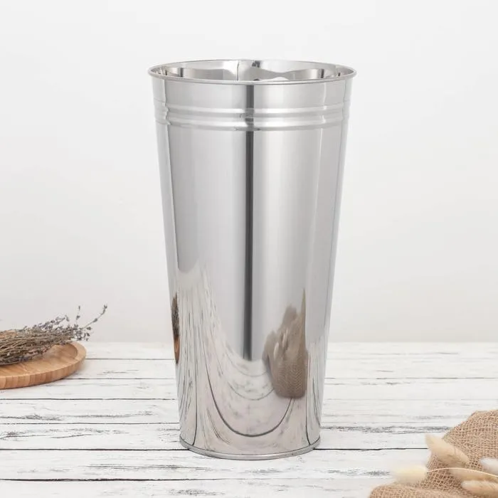 Вазон без ручек из нержавеющей стали — это стильный и практичный элемент декора, который станет прекрасным дополнением к любому интерьеру. Он выполнен из высококачественной нержавеющей стали, которая обеспечивает долговечность и устойчивость к коррозии.